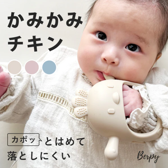 赤ちゃんでも掴みやすく、落としにくいシリコンの歯がためです。