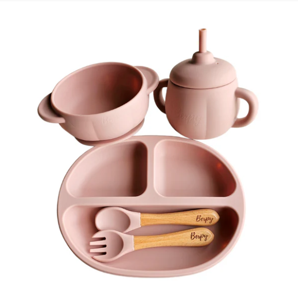かぼちゃモチーフのシリコンプレート、ボウル、カトラリー、マグカップの4店セットです!食洗機で洗えます♪